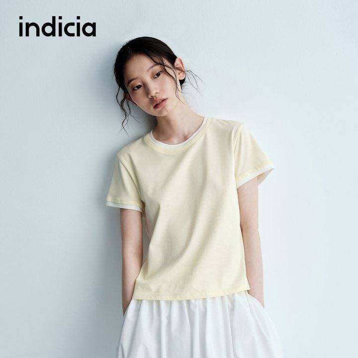 indicia标记25夏新款清爽极简风少女感舒适柔软短袖T恤 L2B5TX055