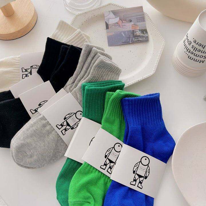 白色袜子女短袜秋冬款纯棉ins潮黑色运动春秋季纯色情侣短筒男袜