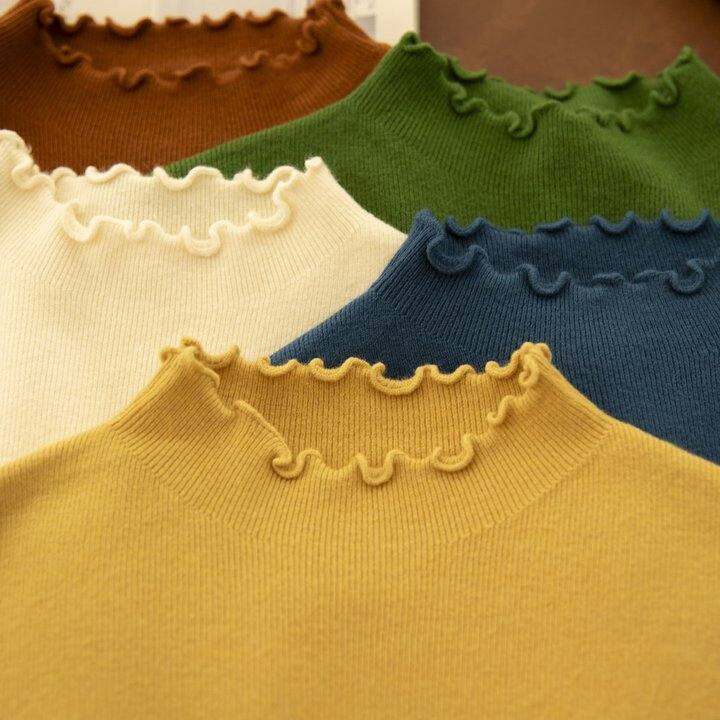 永恒雨 韩版宽松立高领木耳边纯色通勤气质打底针织衫毛衣糖果色