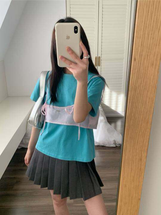 Make more time 档口的短袖,看miss 东东直播种草的。质量做工很不错,吊牌写的是100%新疆棉。版型不会很宽大,衣长不长不短刚刚好。我黄黑皮,买的孔雀南,不会显黑(颜色以直播为准),这个蓝给我一种青春洋溢很有活力的感觉。