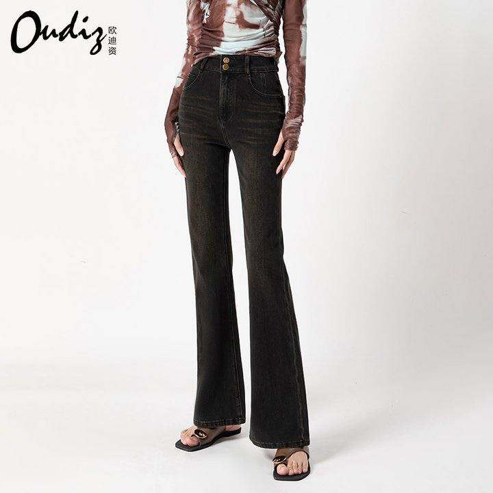 高级轻奢/2025年春季新款轻熟风显腿长微喇叭牛仔裤女修身弹力