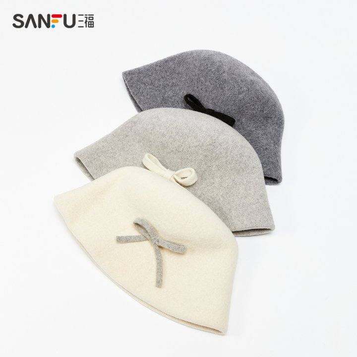 三福简单羊毛蝴蝶结礼帽 优雅气质服饰配件帽子配饰493353
