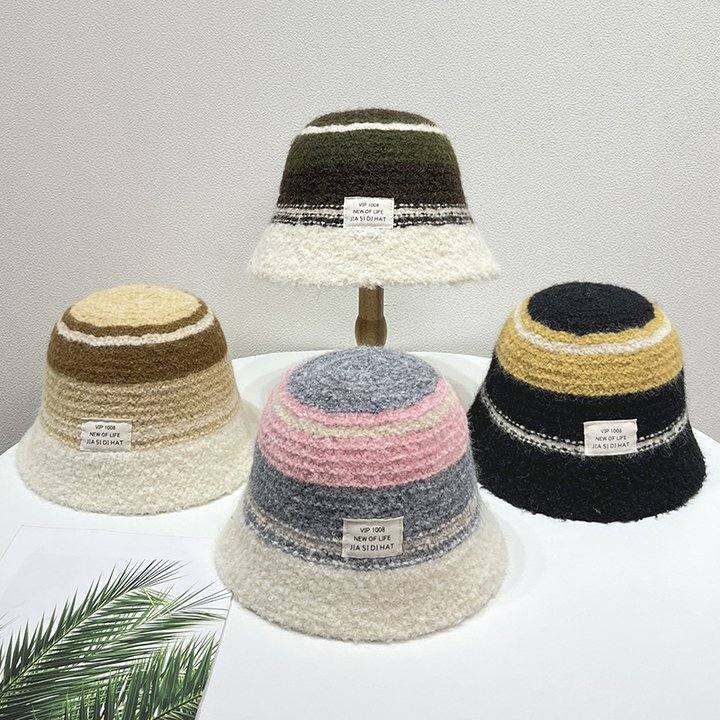 秋冬季新款韩版日系百搭水桶帽子保暖拼色针织盆帽针织圆顶毛线帽