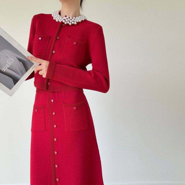 圣多墨 敬酒服新娘结婚订婚礼服端庄大气复古红色小香风套装秋冬