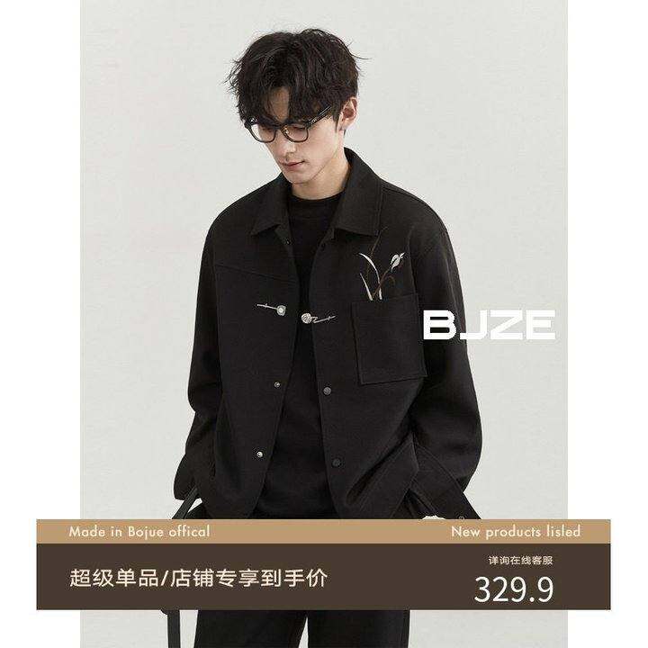 伯爵先生男24秋高级感定织国风刺绣新中式夹克衫翻领宽松休闲外套