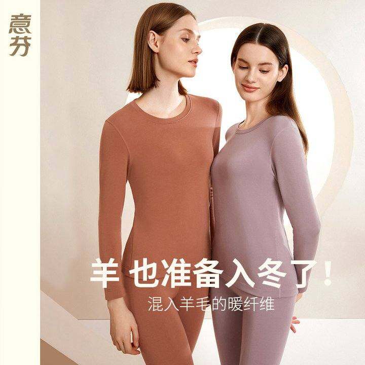 意芬羊毛发热莫代尔保暖内衣女德绒套装加厚加绒大码女士秋衣秋裤