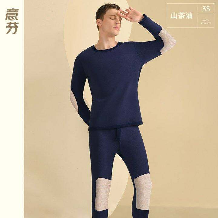 意芬山茶油加厚男士保暖内衣冬加绒发热羊毛护膝秋衣秋裤大码套装