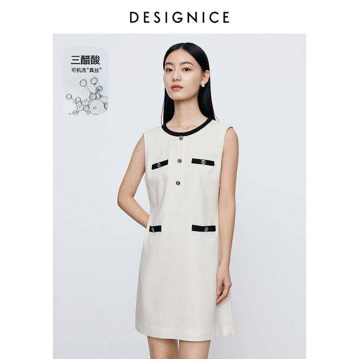 迪赛尼斯2025春新款法式小香风裙子气质醋酸无袖洋装女