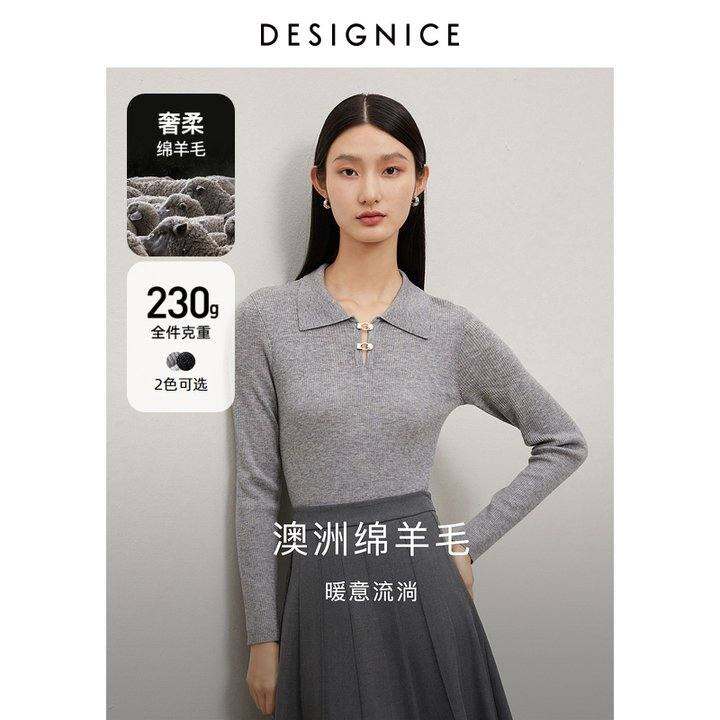 迪赛尼斯翻领内搭外穿miu系设计感毛衣秋冬正肩薄款百搭针织衫女