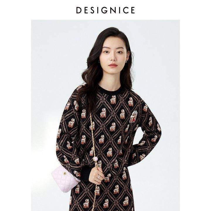 通勤风迪赛尼斯2023春秋新款圆领设计感宽松套头长袖针织衫女