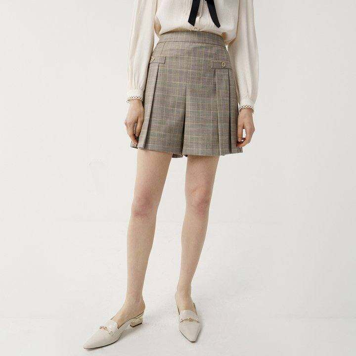 迪赛尼斯春季格纹A字百褶优雅时尚学院格子裙裤短裤女士