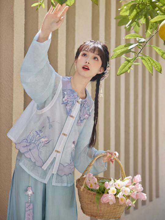 7/12lindymeiyi A4377夏季新款新中式套装盘扣立领小衫