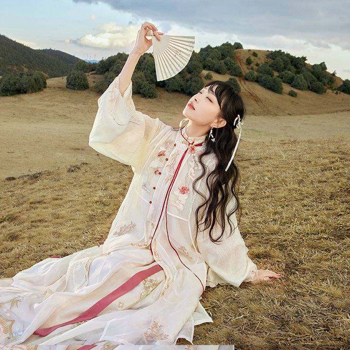 十三余小豆蔻儿[香料贩梦者]绣花对襟外套套头圆领破裙汉元素套装