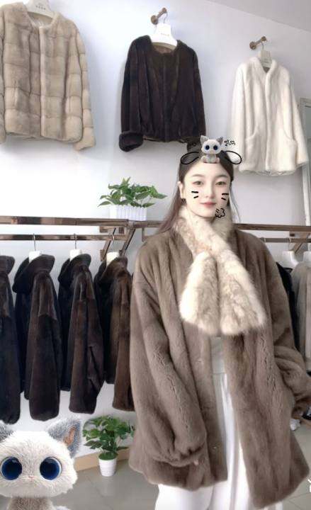 购入的第三件水貂,今年买貂意识又崛起,买买退退10件,最后留下这家米黄色,2xp,毛非常好,短1,看了两天直播下手的,配了店里的紫貂风雪帽