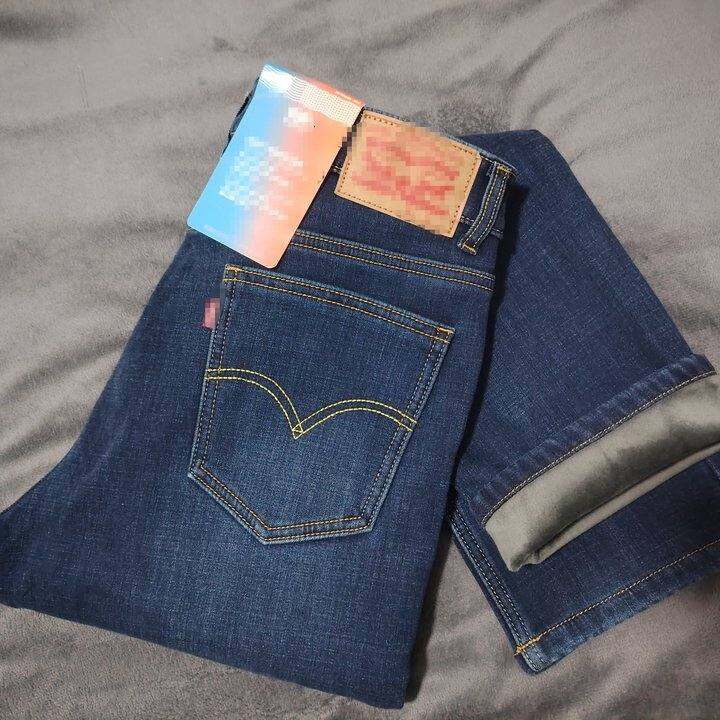冬季新款男士高弹力高腰一体水貂绒合体小直筒加绒牛仔棉裤
