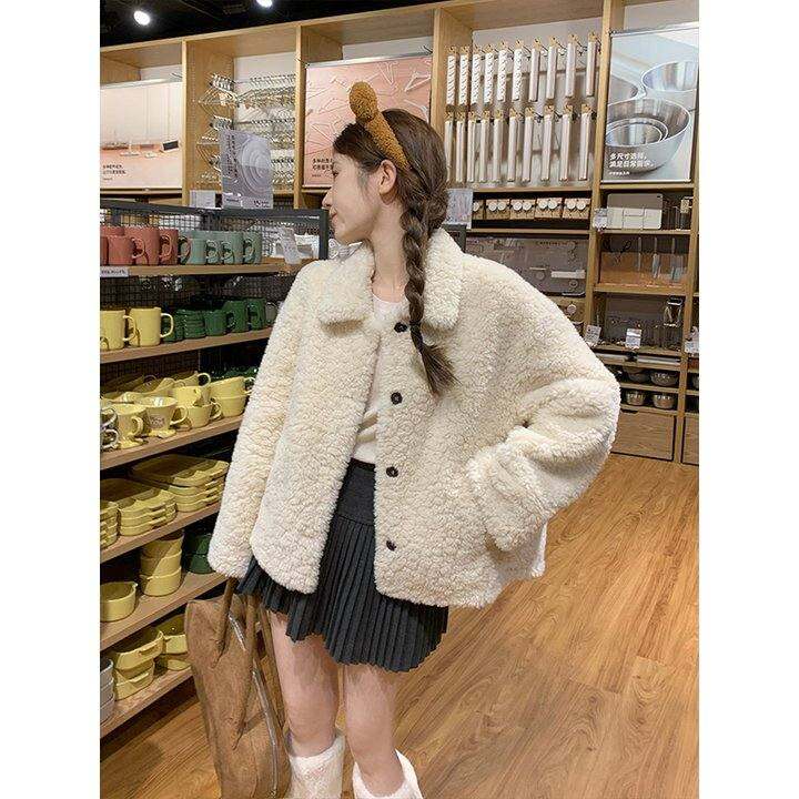 白色羊羔毛外套女短款秋冬皮毛一体廓形显瘦百搭奶fufu毛毛羊羔绒