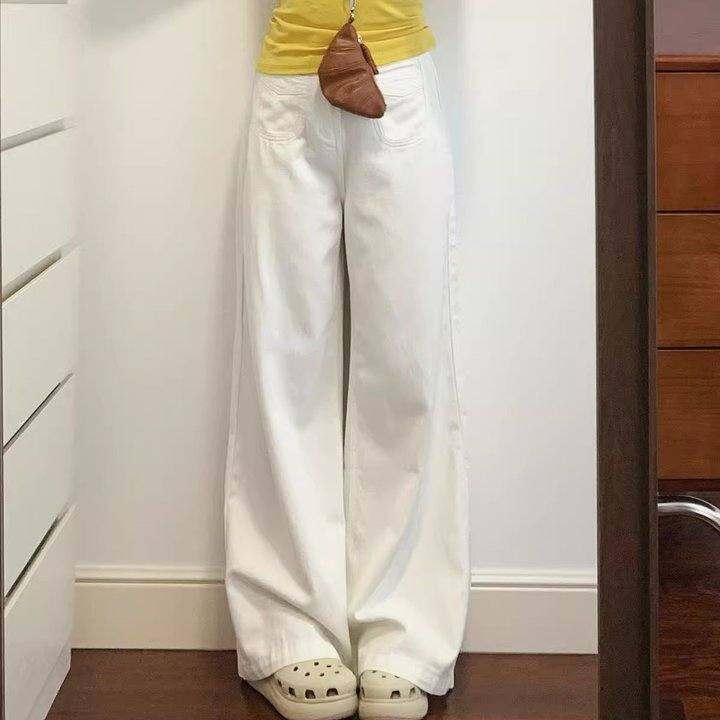 GIRLSPSY白色百搭牛仔裤女不贴腿高腰设计宽松垂感直筒阔腿拖地裤