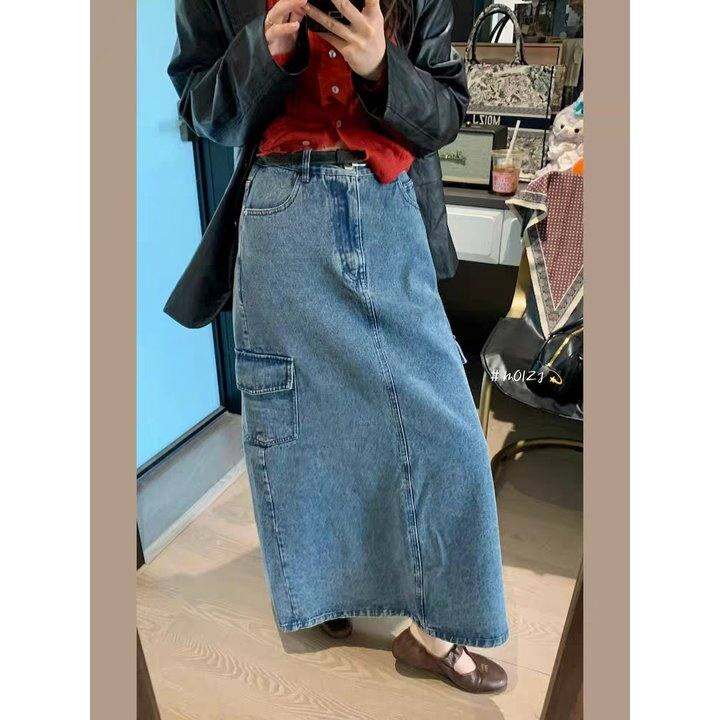 【MY档口】水洗擦色 全带腰带!复古工装风水洗牛仔裙A字半裙长裙