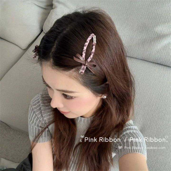 韩国粉色豹纹皮质蝴蝶结发夹前额刘海夹侧边发卡碎发夹新款发饰女