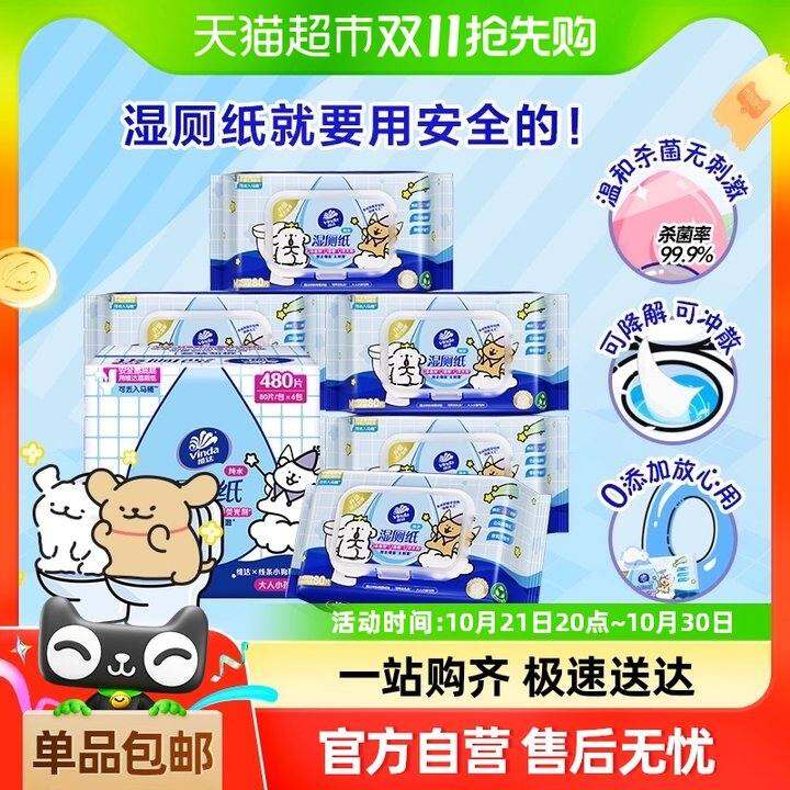 【李佳琦超级家装节】维达×线条小狗IP湿厕纸家庭装80片X6包