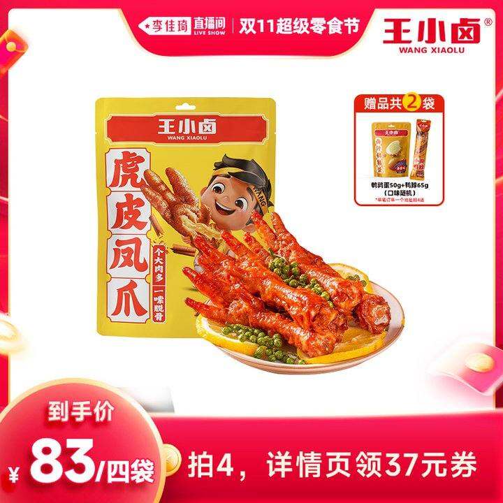 【李佳琦超级零食节】王小卤虎皮凤爪210g鸡爪卤味解馋小零食熟食