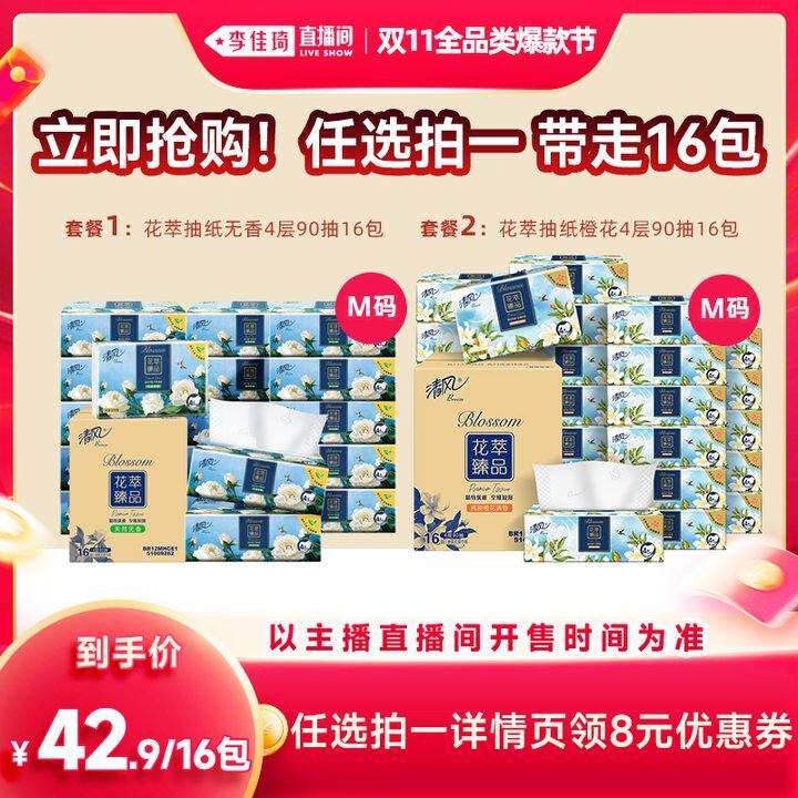 【李佳琦全品类爆款节】清风抽纸花萃系列4层90抽16包压花纸巾M码