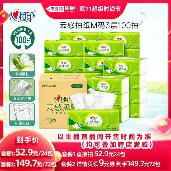 【李佳琦超级时尚节】心相印云感抽纸M码3层100抽24包整箱d