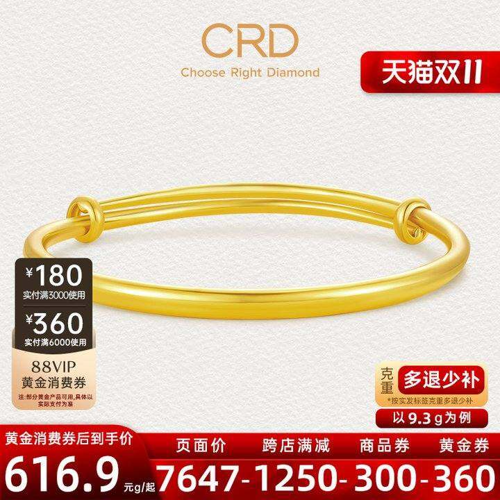 CRD克徕帝黄金亮面足金999推拉宝宝镯手镯儿童满月周岁礼婴儿礼物