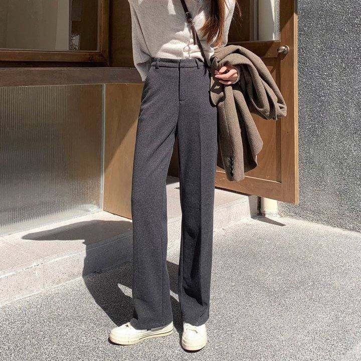 毛呢窄版阔腿裤女2024秋冬高腰显瘦直筒拖地裤加厚休闲西装长裤