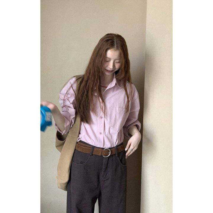 HelloooEat 通勤百搭纯色衬衫2024秋冬法式经典款气质长袖上衣女