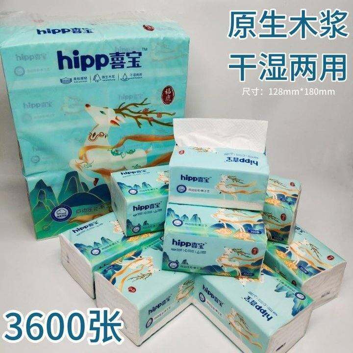 hipp喜宝加厚餐巾5层抽纸纸家用纸巾原生木浆纸干湿两用整箱100包