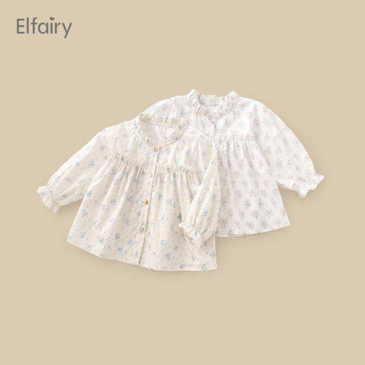 Elfairy女童衬衫法式小碎花衬衣儿童娃娃衫宝宝春秋小童纯棉上衣