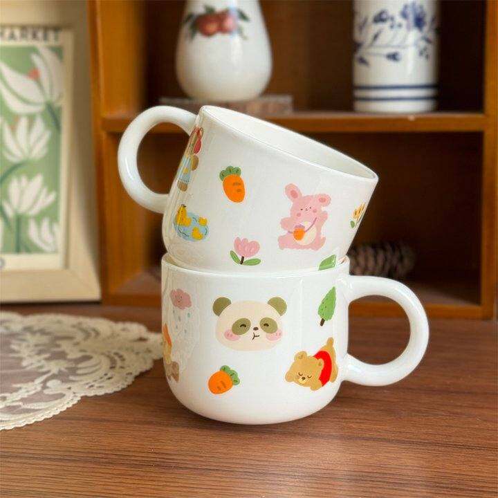 北府 韩式童趣骨瓷儿童杯陶瓷水杯奶杯可爱卡通圆把杯可微波