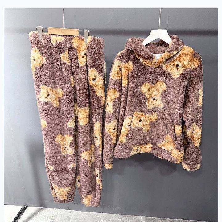 Xxs~2xl 纯元加厚法兰绒保暖居家女柔软细腻舒适卡通家居套装