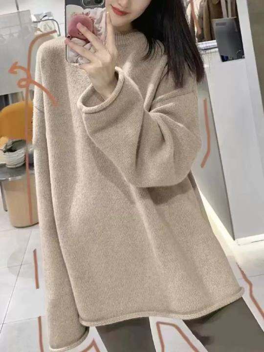 软糯100%纯羊毛衫女中长款宽松加厚慵懒风毛衣羊绒针织打底上衣