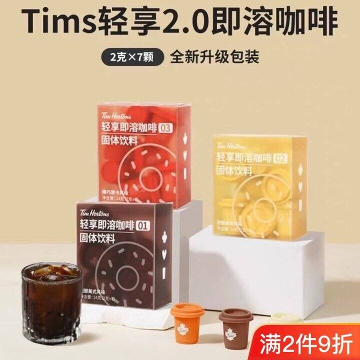 Tims【到手21杯】轻享系列冻干榛巧摩卡浓郁拿铁美式风味黑咖啡,27.9元