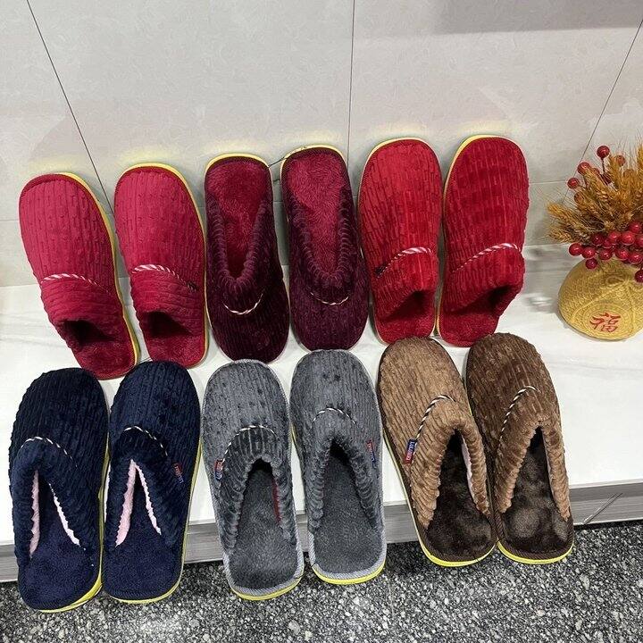 竹节绒加厚防滑棉拖鞋冬季男女情侣款婚庆平底耐磨,7.84元