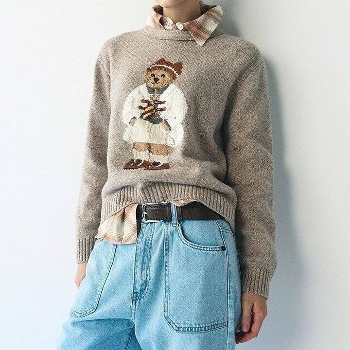 小熊宽松秋冬提花针织衫刺绣圆领上衣毛衣,73.6元