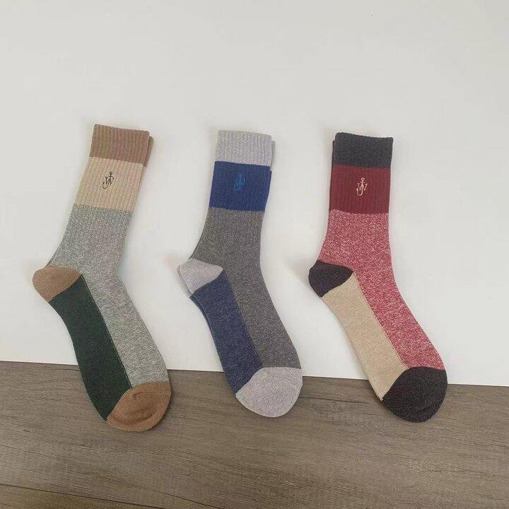 美式复古风大线男士秋冬季加厚拼接潮流中筒袜子时尚长袜刺绣,24元