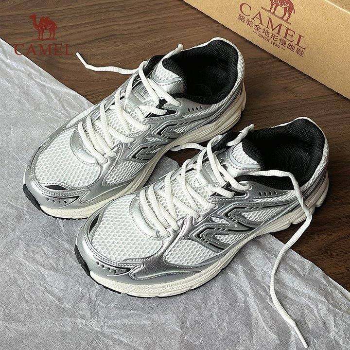 骆驼追寻运动鞋女2025夏季新款跑步鞋网面透气休闲复古老爹男银色