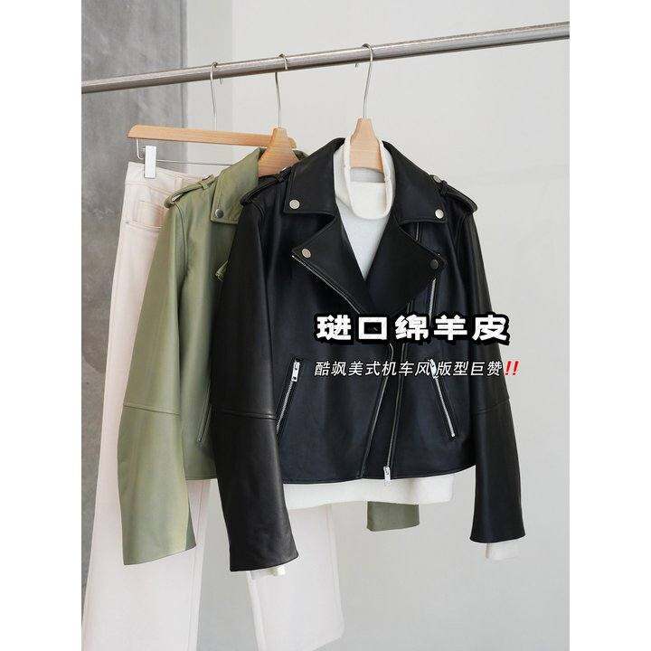 臻品限量7折 酷飒机车风~琎口绵羊皮复古美式夹克外套女〔HYZU564