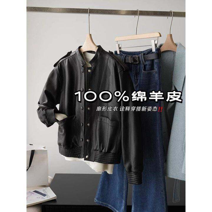 臻品限量5折 柜上2K+琎口1OO%绵羊皮轻涂层立领皮衣外套《HYZU561