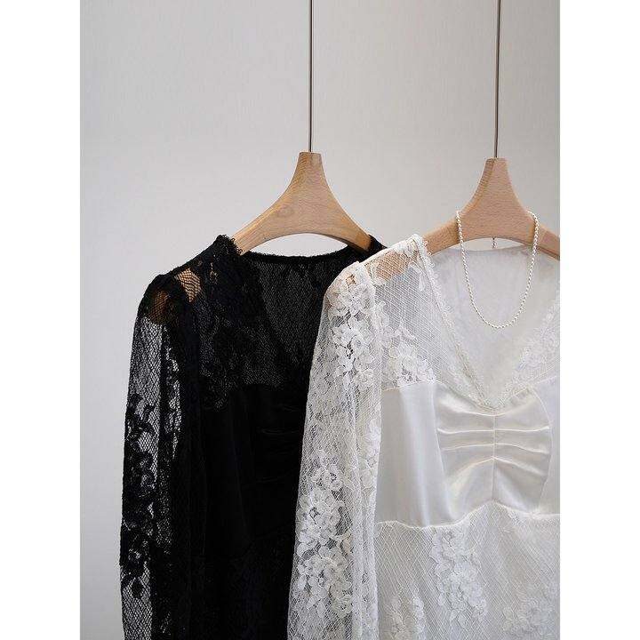 现货告别5折 美的狠惊艳!醋酸拼接棉质蕾丝上衣女早春<HYZU660