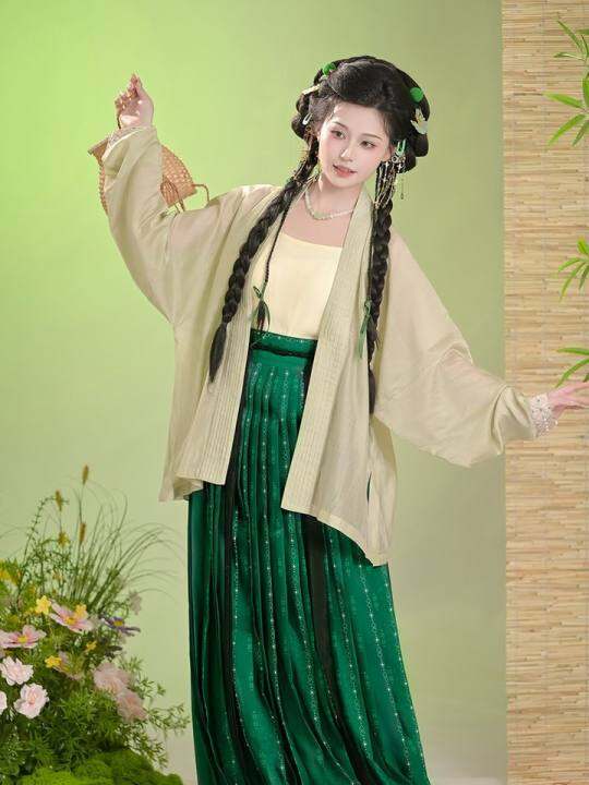 山间集汉服工作室【梨清青】宋制绿色梨花刺汉服百迭裙女装春夏