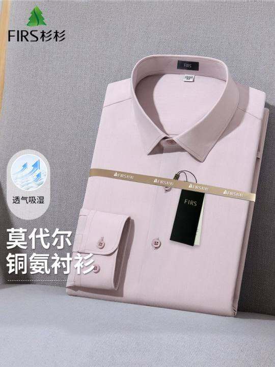 【铜氨莫代尔】杉杉衬衫男士长袖秋季新款粉色结婚伴郎服免烫衬衣