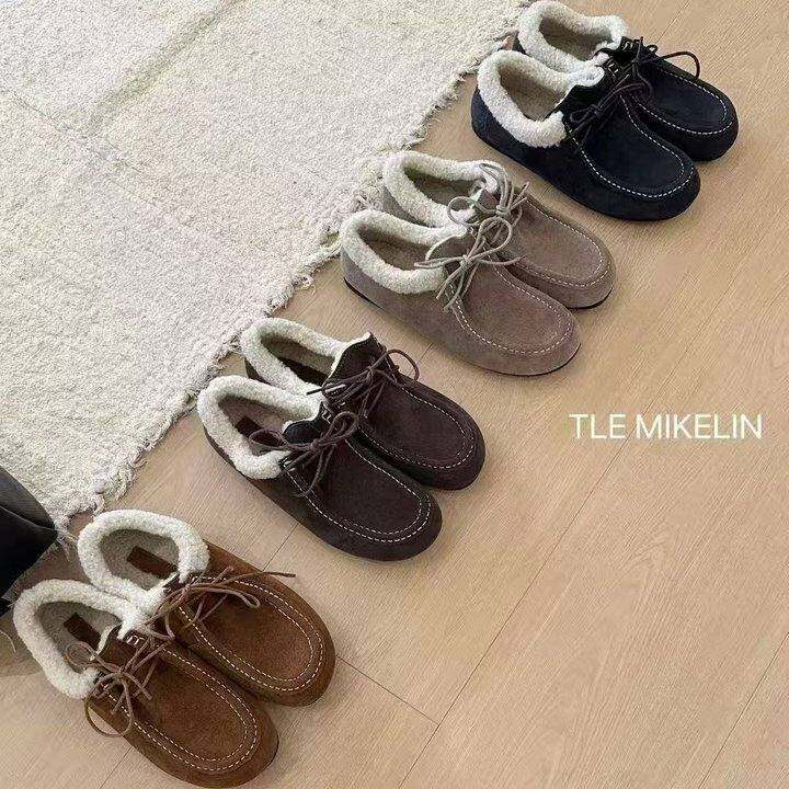 MIKELIN牛皮版~韩系复古真皮系带加绒袋鼠鞋加绒保暖雪地靴棉鞋女