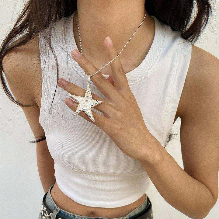atmshop 设计师科技感海星五角星吊坠银色项链甜酷复古高级毛衣链