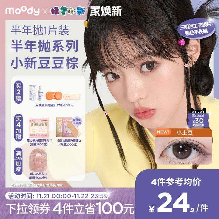 moody美瞳半年抛三明治工艺日常百搭隐形眼镜冷泡乌龙茶1片