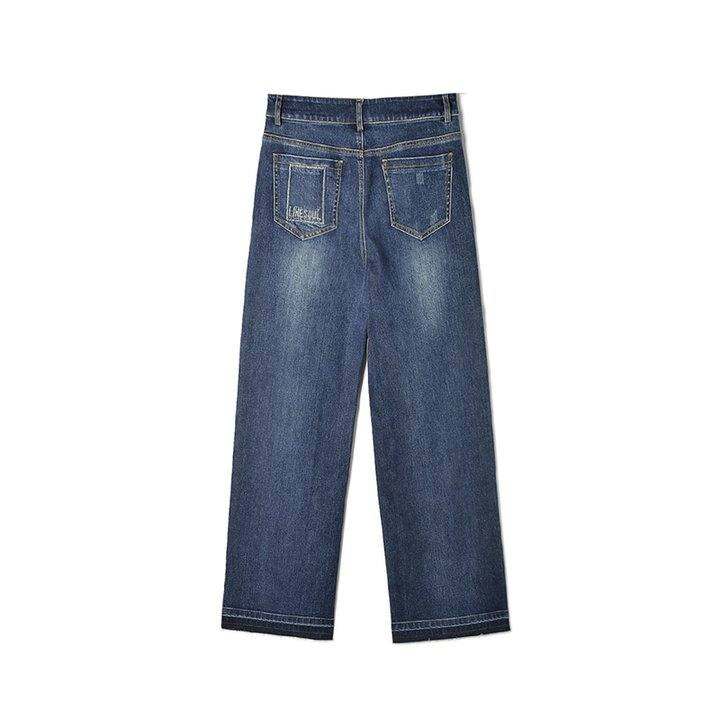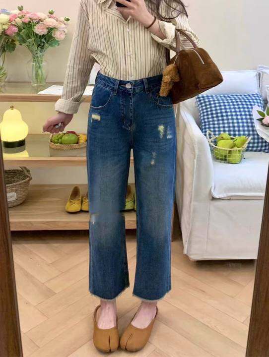9魅LR0S0061高腰微弹长裤遮胯宽裤子牛仔裤女2025秋