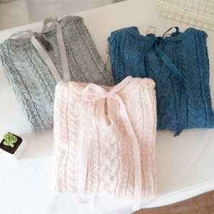 ╰*少女色系蕾丝蝴蝶结复古麻花马海毛毛衣
